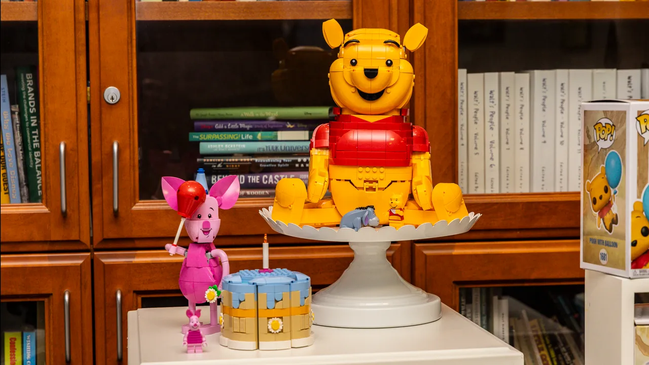 Brinquedos e Colecionáveis: Linha Pop Nooks da Funko de colecionáveis do Ursinho Pooh, com figuras como Pop! Nooks Ursinho Pooh na Árvore de Mel, Pop! Pooh com Balão e Pop! Ursinho Pooh Dormindo; coleções da Disney Store inspiradas no Ursinho Pooh, incluindo versões mini e grandes do Ursinho Pooh e Amigos; dois conjuntos LEGO Disney Ursinho Pooh celebram o centenário: um Pooh detalhado construído com tijolos com um pote de mel com recursos móveis e o conjunto Diversão de Aniversário do Leitão, apresentando um Leitão articulado e um bolo de aniversário que se abre para revelar a casa do Pooh e o Bosque dos Cem Acres; A nova linha Happy Haul da Just Play, que estreou na New York Toy Fair e será lançada este mês, com as figuras Hunny Crew em caixas cegas e o Hunny Hugs Capsule Plush. Os próximos lançamentos incluem uma adição à popular linha Disney Darlings da JAKKS Pacific.