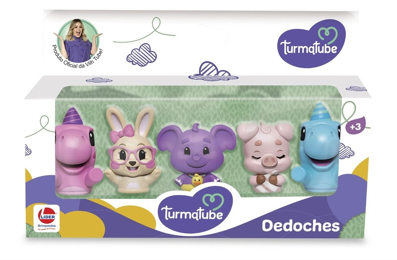 Apresentando uma licença inédita, chegaram os dedoches e bonecos em vinil da TurmaTube, com os personagens que estão conquistando os pequenos: Lara, Valentinha, Ruanito, Nina e Nino. Criada pelo casal de influenciadores, Eliezer e Viih Tube, os lançamentos pela Lider Brinquedos marcam a entrada da TurmaTube no universo dos brinquedos infantis.