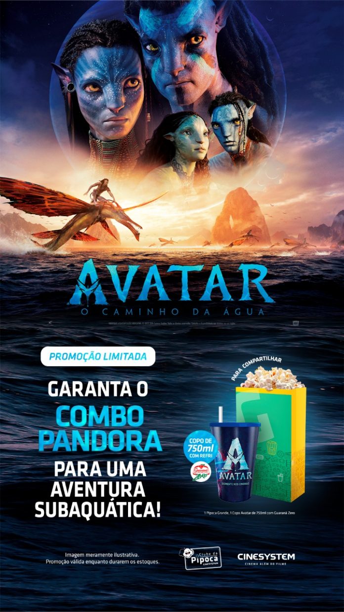 Além disso, quem quiser eternizar mais este marco do cinema mundial poderá adquirir o ‘Combo Pandora’, criado especialmente para celebrar o lançamento do filme. O kit conta com copo personalizado de 750ml e pipoca em tamanho grande.