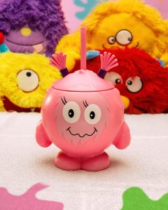 Disponíveis em quatro modelos exclusivos. Com design divertido e cheio de personalidade, cada copo vem acompanhado de bombons de chocolate ao leite com recheio sabor brigadeiro.