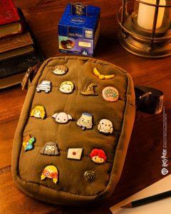 Esfera de chocolate ao leite com um pin surpresa, disponível em 15 versões com diferentes símbolos e personagens da saga.