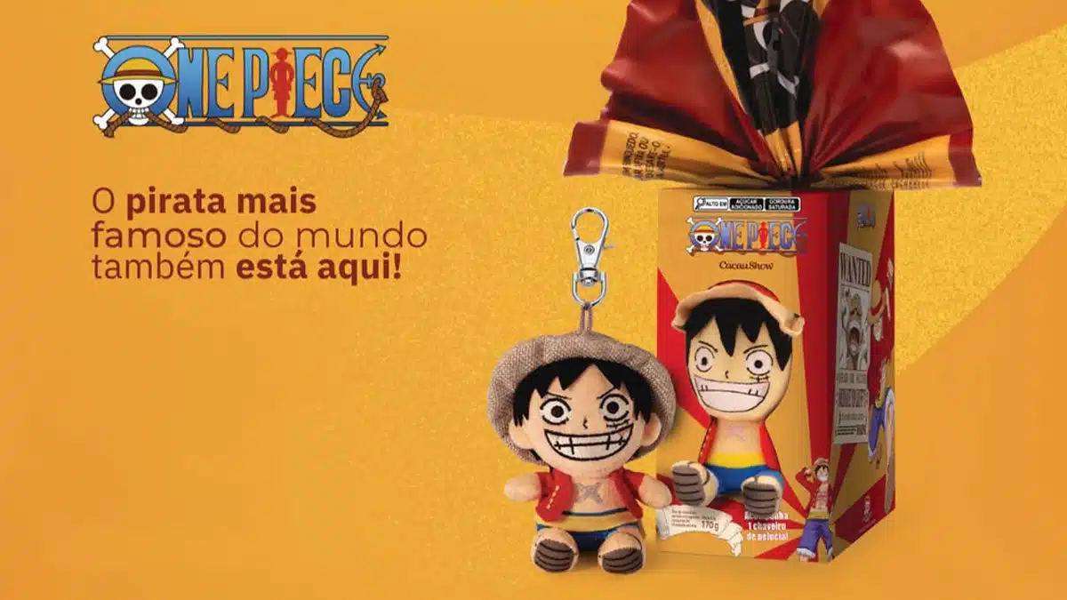 A Cacau Show anunciou o lançamento de um ovo de Páscoa temático de One Piece para 2026, que incluirá um chaveiro e uma pelúcia do personagem Luffy.