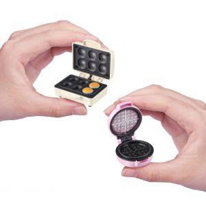 • Mini Brands Magic Cook Kitchen: Focada na simulação de preparo, a linha apresenta nove mini eletrodomésticos funcionais, como máquinas de waffle, pipoca e liquidificadores, que operam via luz UV para “finalizar” as receitas em miniatura.