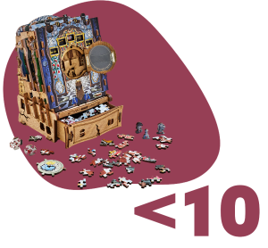 CluePuzzle – The Wonderbox of Alice combina o quebra-cabeça 3D clássico com mecânicas de jogos de escape. Mais de 180 peças de madeira formam uma caixa-quebra-cabeça funcional, com fechaduras e partes móveis.