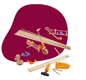 Estruturas criativas ganham forma ao conectar as varetas por meio de juntas de encaixe. O conjunto inclui 22 sugestões de projetos, mas é possível criar um número infinito de construções próprias — especialmente porque novas varetas podem ser facilmente compradas em lojas de materiais de construção.