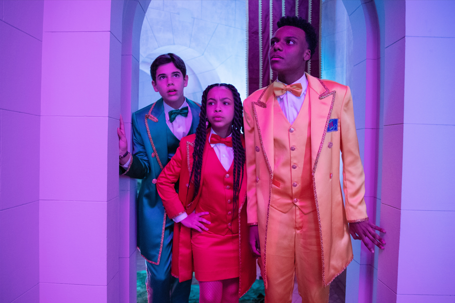 “D.P.A. 4 – O Fantástico Reino de Ondion” tem cena inédita e novas fotos divulgadas pela Paris Filmes. O filme, dirigido por Mauro Lima, já está em cartaz nos cinemas para animar as férias de verão das crianças e suas famílias com a nova aventura do trio de detetives mais querido da televisão e do cinema brasileiro. Na trama, Mel (Emilly Puppim) e Zeca (Stéfano Agostini) embarcam em uma viagem mágica em busca de Max (Samuel Minervino), que sumiu misteriosamente. Na cena, os detetives das capas vermelha e verde são atacados por plantas misteriosas enquanto procuram o amigo em Ondion. A dupla pensa rápido e consegue encontrar uma solução para escapar do perigo e continuar suas buscas pelo detetive da capa amarela.