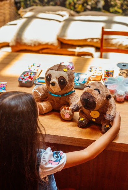 A experiência convida as crianças a personalizarem sua própria pelúcia, com opções de modelos como capivara ou bicho-preguiça. Durante a ativação, os pequenos participam de todas as etapas do processo, do enchimento aos detalhes finais, incluindo a criação de uma mensagem especial colocada no “coração” do novo amiguinho.