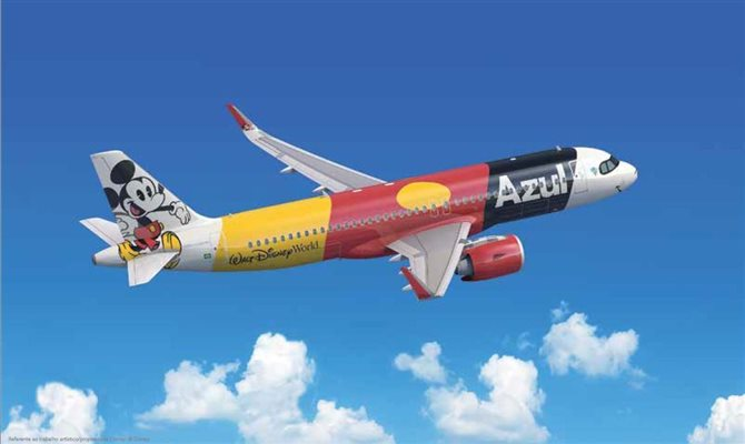 Para comemorar os 50 anos da Walt Disney World, a empresa fez uma parceria com a Azul Linhas Aéreas. A partir de outubro, o primeiro avião comemorativo, um Airbus A320 pintado de vermelho, amarelo e preto e com o Mickey desenhado, estará operando no Brasil. Mais três aeronaves chegarão até 2022.