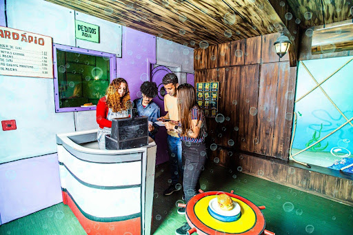 Para uma aventura mais leve e divertida, o Escape 60′ apresenta também a atração ‘Bob Esponja’, onde o vilão Plankton se une ao temido fantasma do Holandês Voador para tentar roubar a fórmula secreta do hambúrguer de siri. Os jogadores terão apenas 60 minutos para ajudar Bob Esponja a salvar a fórmula e escapar do Siri Cascudo antes que os vilões consigam seu objetivo. E aí, vocês estão prontos, crianças?