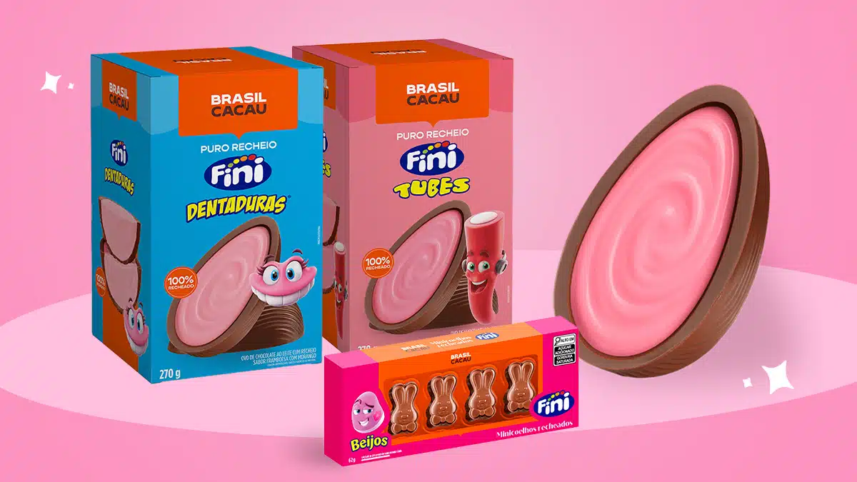 Em colaboração com a Brasil Cacau, a Fini lança ovos de Páscoa de chocolate ao leite recheados com sabores de Dentaduras e Tubes Morango, além de uma caixa de Mini Coelhinhos de chocolate ao leite recheados com Fini Beijos, disponíveis nas lojas Brasil Cacau.