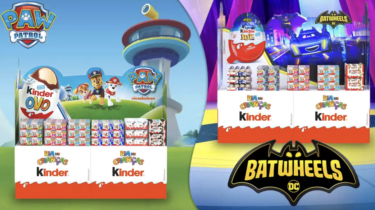 Kinder Ovo trará personagens da Patrulha Canina, uma popular franquia infantil, enquanto Kinder Joy apresentará a coleção BatWheels, série infantil do universo do Batman.