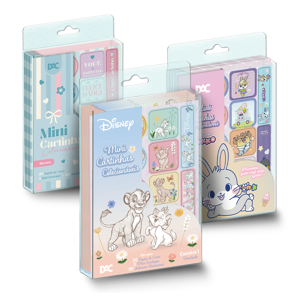 Inspirada no comportamento da Geração Z e dos millennials, que ressignificam hábitos do passado com uma nova estética, a DAC apresenta conjuntos exclusivos de mini cartinhas colecionáveis das licenças Clássicos Disney, a releitura Looney Tunes Gokko no estilo japonês Kawaii e a marca própria Enjoy, que apresentam visual marcante e forte apelo comercial.