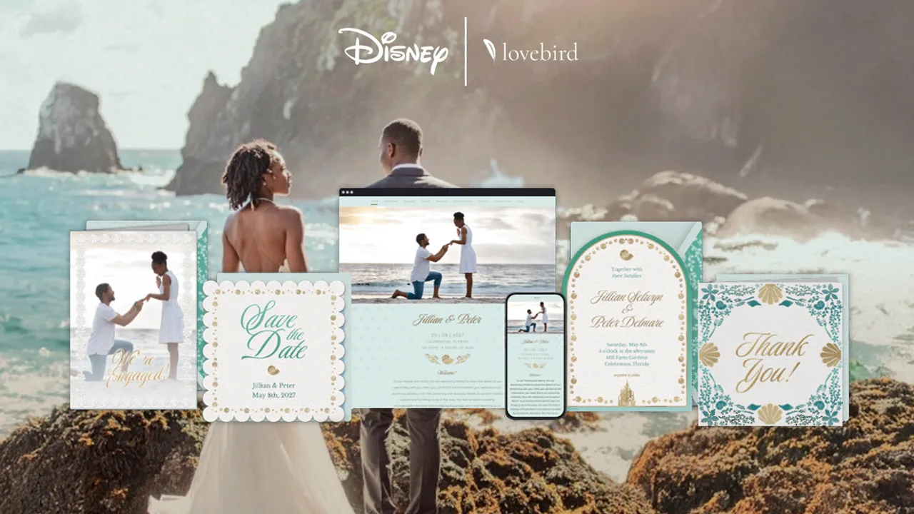 Lovebird, uma plataforma de comunicação para convidados de casamento, anunciou uma colaboração com a Disney e o lançamento da Coleção Disney no Lovebird. Casais noivos podem revelar sua celebração de casamento em grande estilo Disney e gerenciar cada ponto de contato com seus convidados em uma plataforma digital perfeita – começando com sites de casamento inspirados na Disney e anúncios de noivado, e indo até os cartões de save the date, convites e agradecimentos.