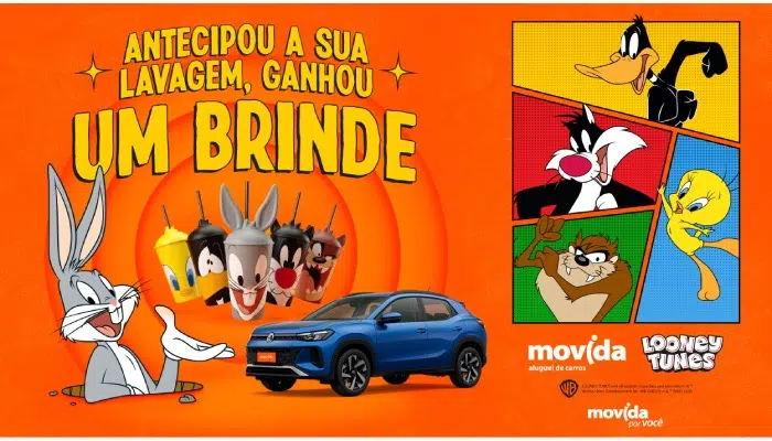 A campanha mantém a proposta de valorizar serviços estratégicos da companhia por meio de ativações culturais e divertidas! Durante o período, em todas as lojas da Movida no Brasil, clientes que contratarem a lavagem antecipada no momento da reserva pelo site, aplicativo ou diretamente nas unidades físicas ganham copos personalizados com personagens como Pernalonga, Patolino, Piu-Piu, Taz e Frajola.