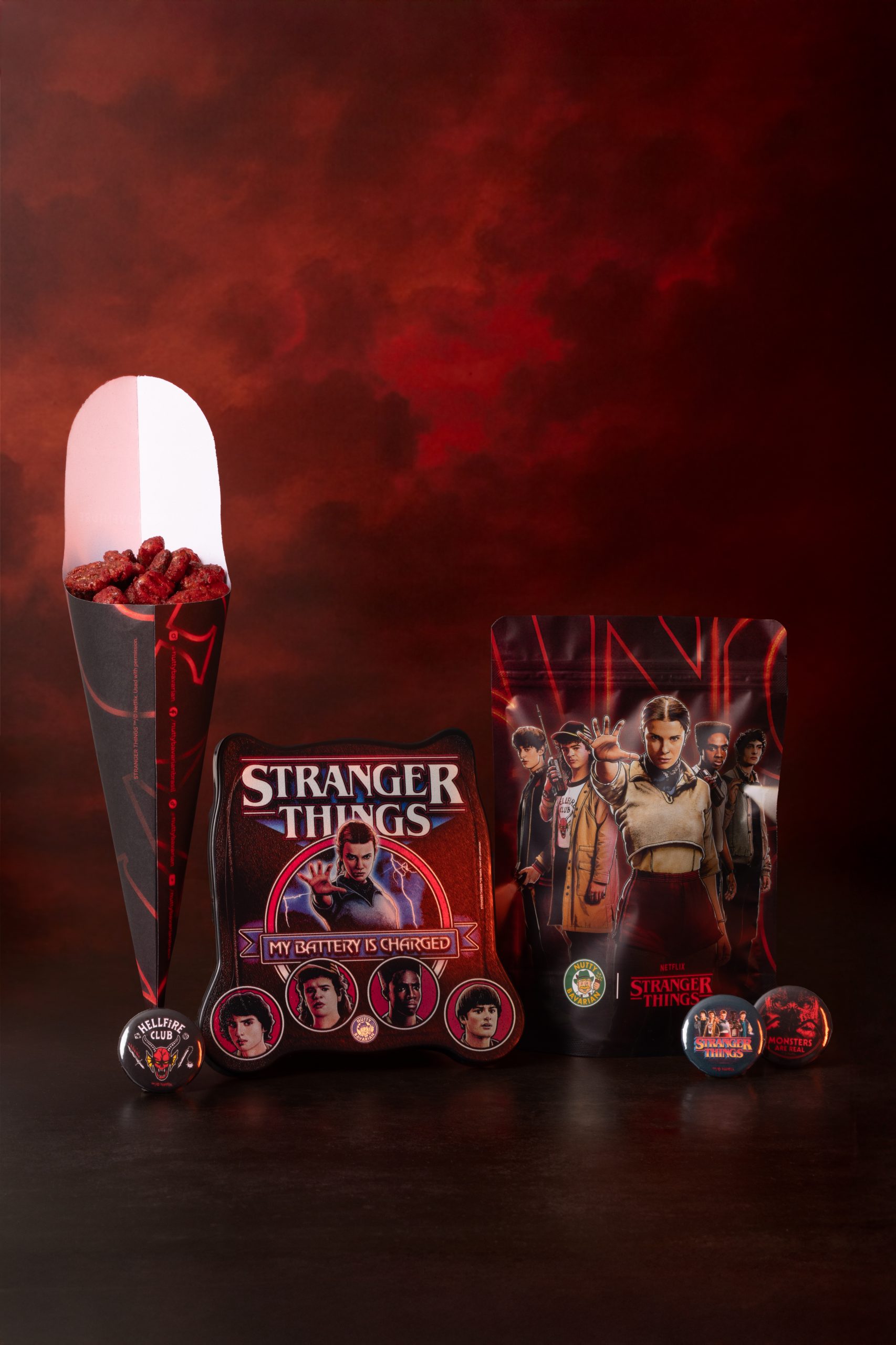 A collab marca a chegada da quinta e última temporada de Stranger Things e combina sabor, experiência e entretenimento. Entre as novidades estão sabores exclusivos de nuts desenvolvidos especialmente para a campanha, embalagens colecionáveis inspiradas no universo da série (LunchBox, Zip Pequeno e Mega Cone), além de bottons temáticos, verdadeiros easter eggs para os fãs.