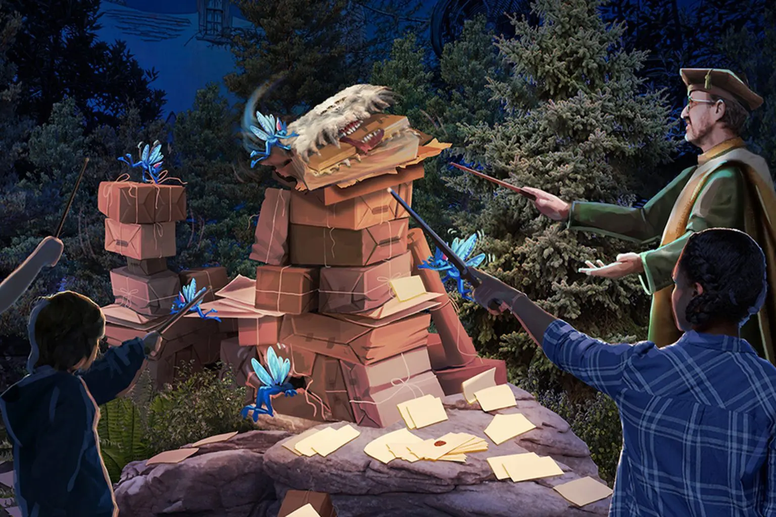 Guiados por um professor de Criaturas Mágicas de Hogwarts, os participantes percorrem trilhas noturnas repletas de criaturas mágicas e desafios interativos.