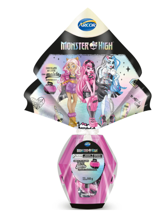 O Ovo de Páscoa Arcor Monster High com Brinquedo combina chocolate ao leite cremoso com embalagem temática e brinde colecionável surpresa. Inspirado no universo fashion e autêntico de Monster High, o produto é perfeito para fãs que adoram estilo e diversão em cada detalhe.