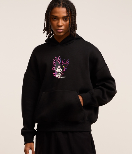Casaco Boxy Em Fleece Com Felpa Com Estampa Kuromi Preto – 119,90