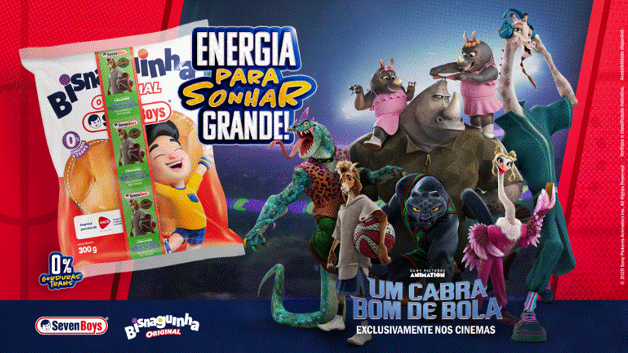 Seven Boys, marca da Bimbo Brasil, entra em quadra em parceria com a Sony Pictures para o lançamento nacional da animação “Um Cabra Bom de Bola”. As tradicionais bisnaguinhas da marca ganham uma embalagem especial levando todo o espírito do filme para os pontos de venda e para a rotina das famílias.