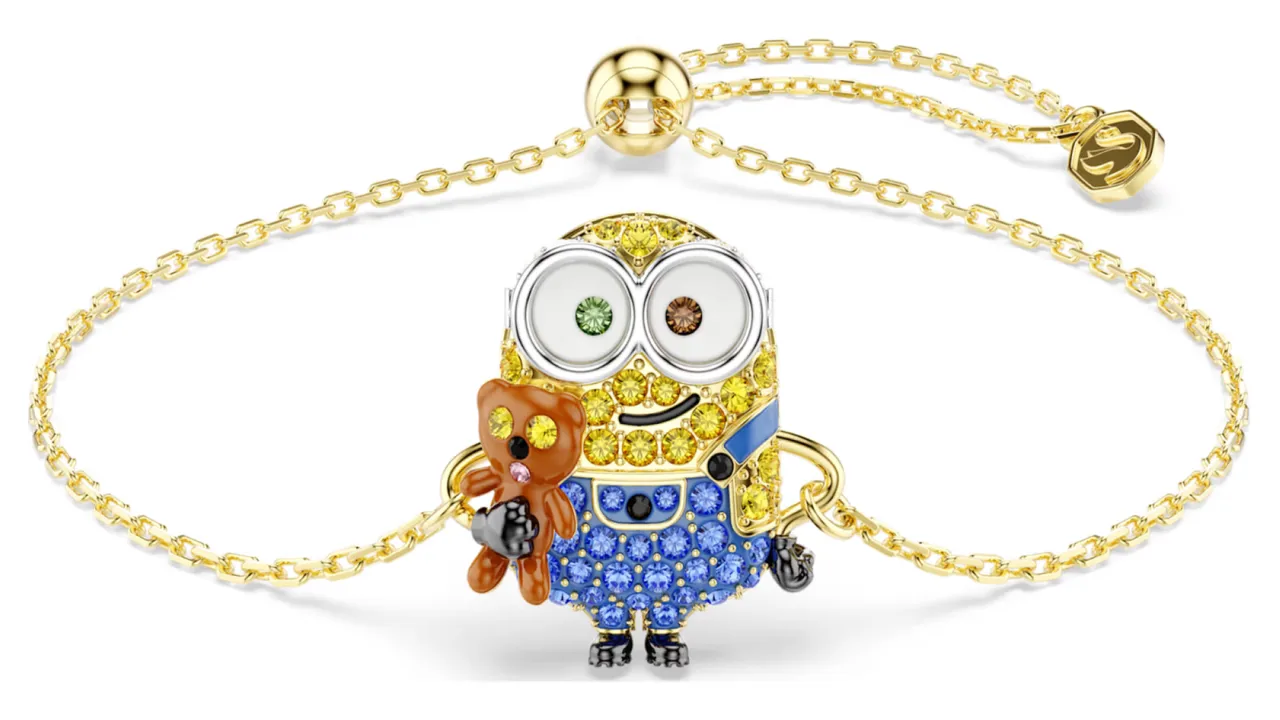 Personagens de “Meu Malvado Favorito” e “Minions”, incluindo Bob, Kevin e Stuart, são reimaginados em cristais amarelos e azuis vibrantes em colares, pulseiras e brincos. Três Berloques Swarovski completam a coleção, incluindo um berloque de banana.