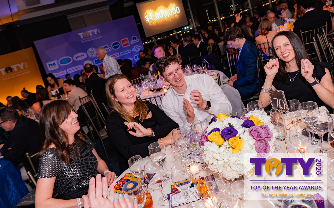 O Prêmio Brinquedo do Ano® (Toy of the Year® – TOTY®) da The Toy Foundation, realizado em 13 de fevereiro de 2026, é o momento anual de união da indústria de brinquedos para celebrar criatividade, inovação e se reunir em apoio a crianças em situação de necessidade. Quase 800 profissionais do setor de brinquedos e entretenimento participaram da celebração no Pier Sixty, na cidade de Nova York. A compra de ingressos, as atividades relacionadas aos prêmios, a participação em rifas, os lances em leilões e as doações financeiras contribuíram para arrecadar mais de US$ 1 milhão, valor destinado aos esforços da The Toy Foundation para distribuir brinquedos e financiar projetos de brincadeira para crianças necessitadas em todo o mundo.