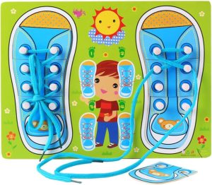 - Aprendendo a Amarrar o Tênis: brinquedo interativo que ensina a criança a amarrar cadarços, desenvolvendo habilidades motoras finas, autonomia e concentração.
