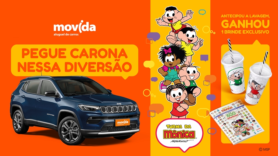 A Turma da Mônica e a Movida se uniram em uma campanha que leva os personagens de Maurício de Sousa às lojas de locação de veículos da empresa.