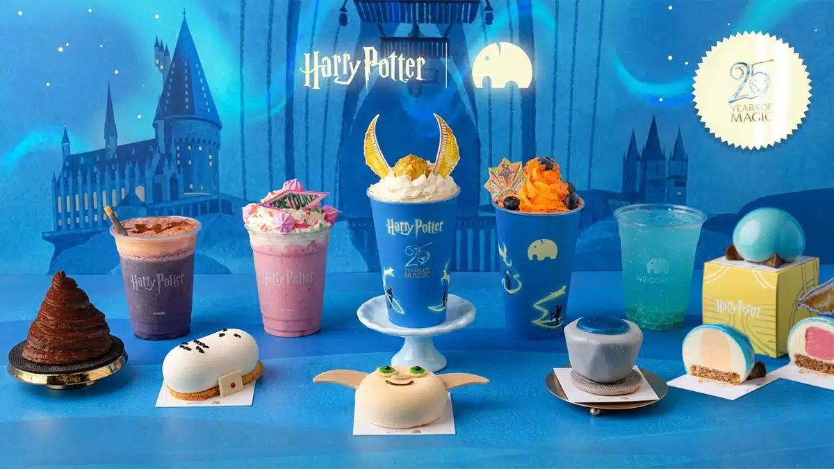 Para celebrar os 25 anos da saga Harry Potter, a We Coffee lançou um novo menu temático inspirado no universo bruxo, com 12 opções entre sobremesas, bebidas e salgados que fazem referência a elementos icônicos dos filmes, como o Pomo de Ouro e o elfo Dobby. Além do menu, a rede também oferece produtos temáticos como pelúcias, copos térmicos, meias e ecobags.
